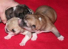 2. 1. 2008 puppies are born: 1 red male, 1 red female, 2 brindle females